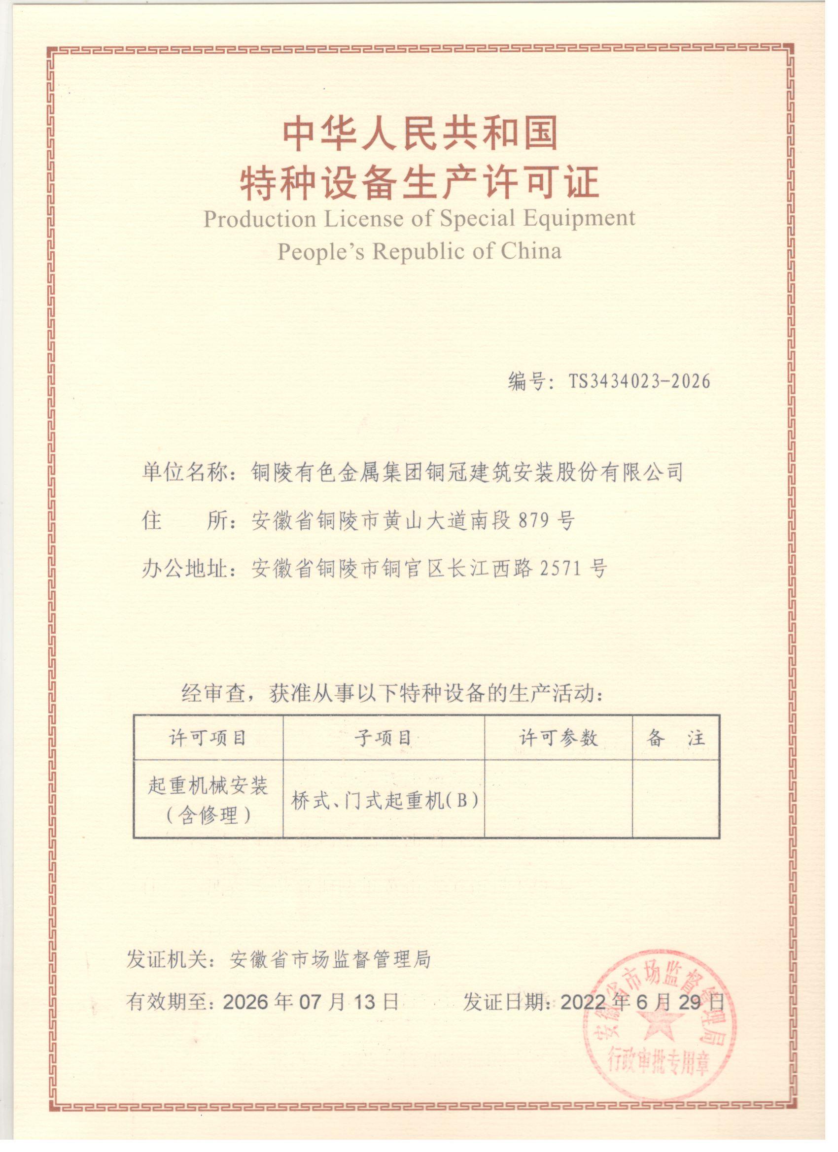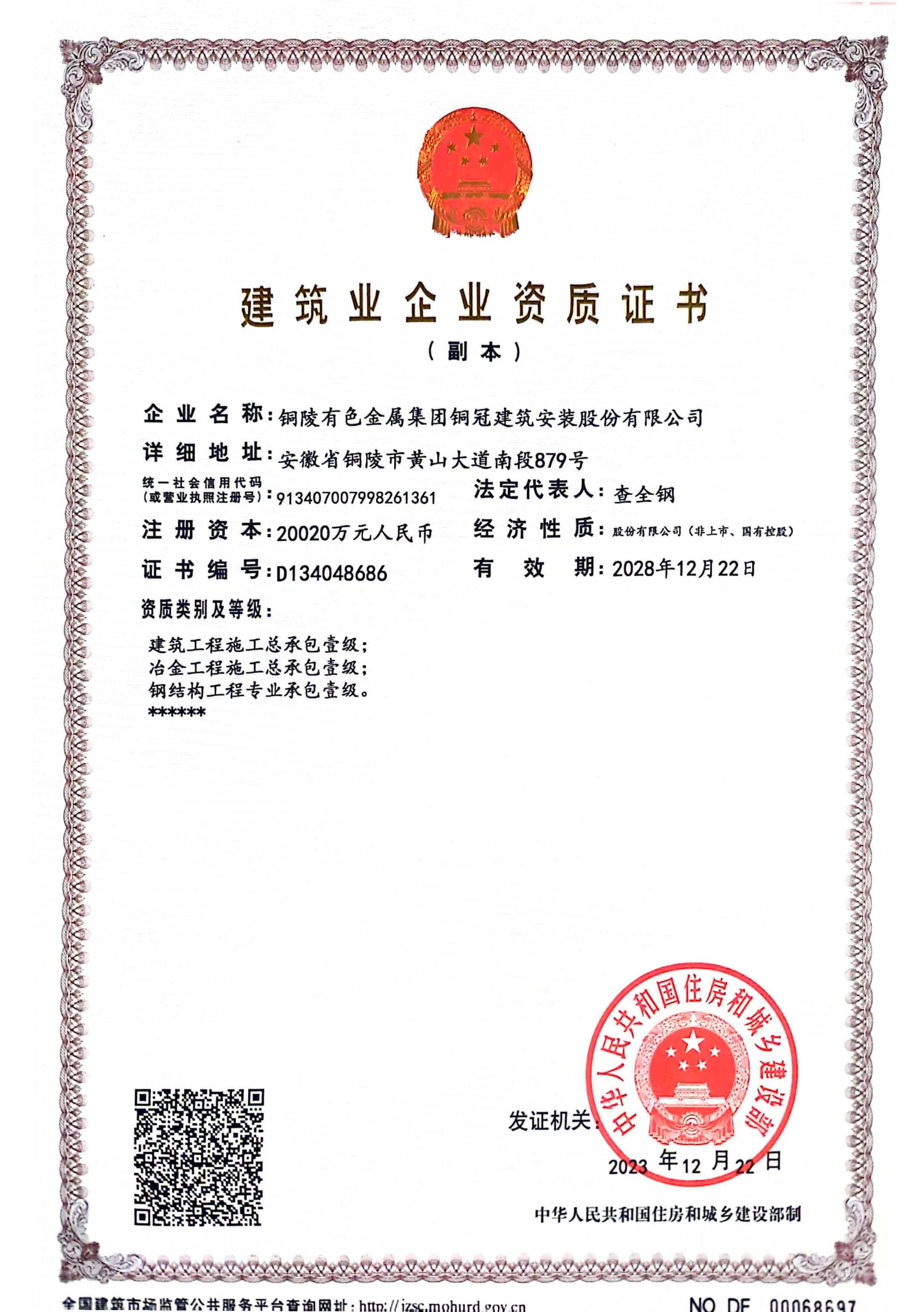 有色金屬工業(yè)建設工程質(zhì)量檢測機構資質(zhì)證書